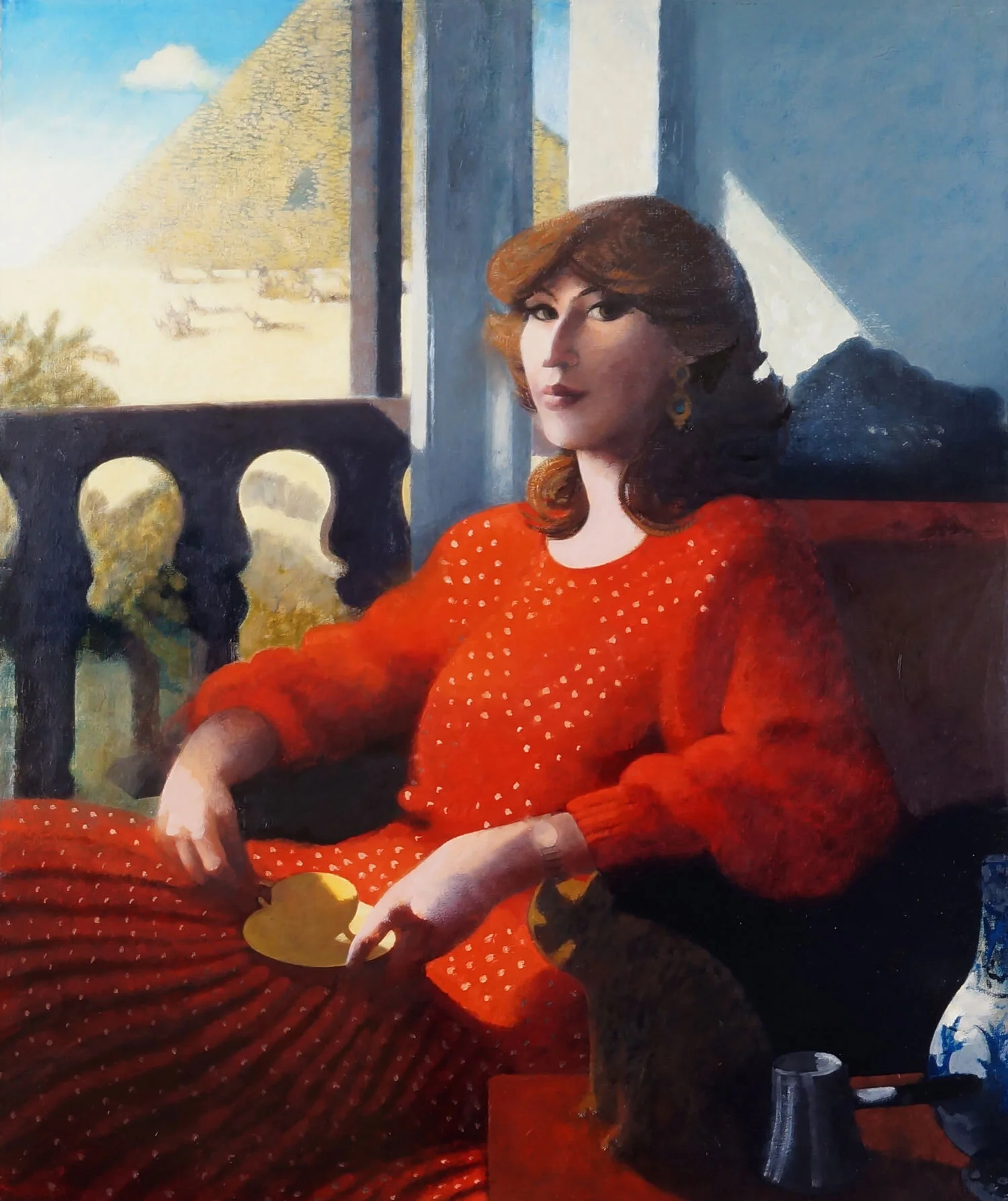 Bill (right) in front of The Park tapestry in the workshop (1996).